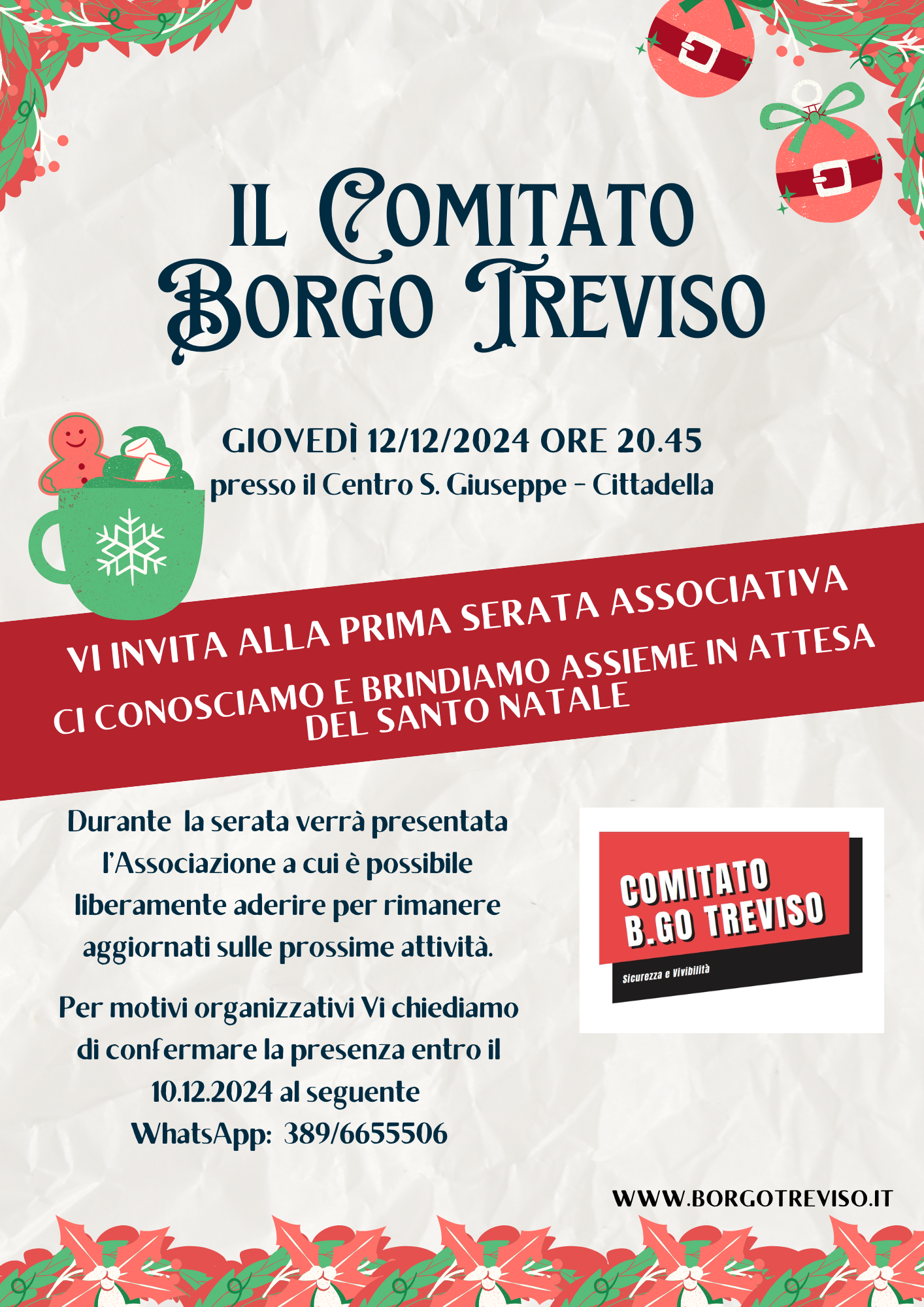 L’associazione si propone di essere un punto di riferimento stabile ed organizzato per dialogare con l’Amministrazione Comunale con l’obiettivo di garantire a Borgo Treviso maggiore attenzione istituzionale.